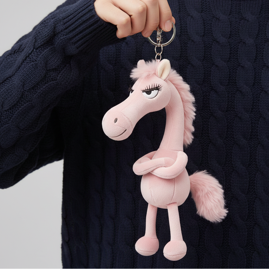 Fedezd fel a „Merész ló” kulcstartót, a tökéletes kiegészítőt mindenkinek, aki értékeli a humor és az egyediség egy csipetnyit! Ikonikus „morgós” kifejezésével és stilizált dizájnjával ez a plüss állat bármilyen táskát vagy kulcscsomót érdekes tárggyá és nagyszerű beszélgetési témává alakít.